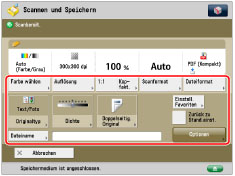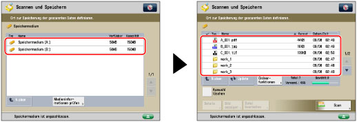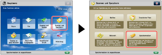 Es ist erforderlich, <Scanfunktion verwenden> in [Scan/Druckfunktion verwenden] zum Scannen von Dokumenten in ein Speichermedium zu aktivieren. (Vgl. Abschnitt "Einstellungen für Speichermedien".)