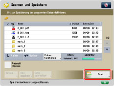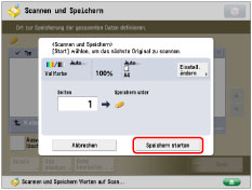 Sie können bis zu 999 Seiten gleichzeitig scannen und speichern. Wenn doppelseitige Originale über den Einzug gescannt werden, können Sie bis zu 1.000 Seiten speichern. Ist die maximale Anzahl von einscanbaren Originalen erreicht, werden Sie auf dem Display gefragt, ob Sie speichern möchten.
