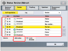können Sie nur den Sendejob abbrechen, der gerade gescannt wird. |