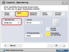 Berühren Sie die Taste [Datum] → Berühren Sie die Auswahlliste <Datumsformat> → Wählen Sie das Format des Datums.