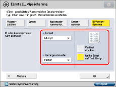 Berühren Sie nacheinander die Tasten [Einstellungen Funktion] → [Allgemein] → [Einstellungen Druck].