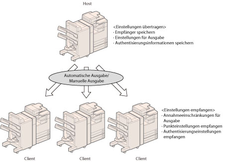 Einige Einstellungen aus <Einstellungen/Speicherung> werden nicht verteilt. Nähere Informationen finden Sie unter "Einstellungen Funktion: Drucker".