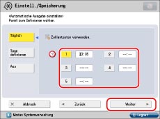 Wenn Sie die automatische Lieferung nicht definieren wollen, wählen Sie [Aus] → Berühren Sie nacheinander die Tasten [OK] → [OK].