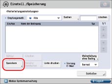 Wenn Sie <Empf.Datei speich./druck.> und [Speicherempfang] auf 'Ein' stellen, wird die empfangene Datei in der Box Speicherempfang gespeichert. Wenn Sie [Speicherempfang] deaktivieren, wird die empfangene Datei automatisch gedruckt. (Vgl. Abschnitt "Definieren von Fax/I-Fax Eingangsboxeinstellungen".)