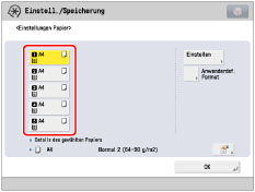 Anstelle der manuellen Eingabe der Werte können Sie eine der Tasten ([S1] bis [S5]) mit gespeicherten Einstellungen für Papierformate verwenden.