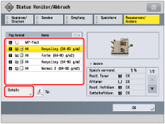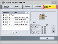 Nähere Informationen zum Festlegen der [Einstellungen Papier] finden Sie im Abschnitt "Speichern des Papierformats und Papiertyps für ein Papierzufuhrmedium".