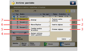 Se pulsa para imprimir una lista de los archivos guardados en un buzón.