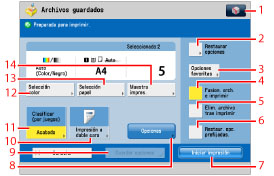 Se pulsa para especificar el número de impresiones cuando se seleccionan varios archivos. Esta tecla aparece únicamente cuando se seleccionan varios archivos. |