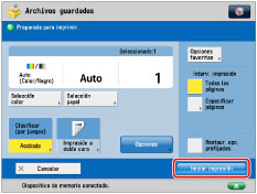 Para cancelar la impresión, pulse [Cancelar]. (No es posible cancelar la impresión pulsando