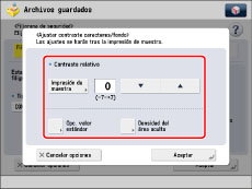 El área del interior del marco de la impresión de muestra es una muestra del resultado para el valor de contraste relativo establecido actualmente.