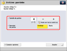 Pulse [-] o [+] para establecer el tamaño de los puntos.