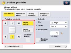 Si establece dos de los modos [Numerar juegos cop.], [Filigrana] o [Imprimir fecha] para imprimir en la misma posición, aparece un mensaje de confirmación al pulsar