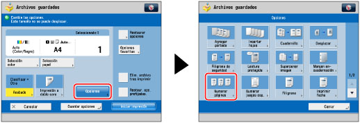 Si usa [Numerar páginas] con [Agregar portada], [Insertar hojas] o [Separador de trabajos], los números no se imprimirán en las páginas insertadas.