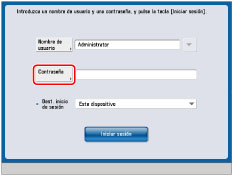 Para más información acerca del nombre de usuario utilizado para el sistema de autenticación de usuarios 'Autenticación de servidor' de SSO-H (incluido cuando se realiza la autenticación de servidor con el sistema de autenticación de usuarios 'Autenticación de servidor + Autenticación de dispositivo local'), consulte al administrador de red (NetworkAdmin).