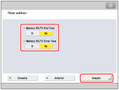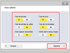[Tono fin RX/TX en mem.] y [Tono error RX/TX en mem.] pueden establecerse cuando la función Fax está disponible. Para más información acerca de los productos opcionales necesarios para utilizar la función Fax, consulte "Productos opcionales necesarios para cada función".