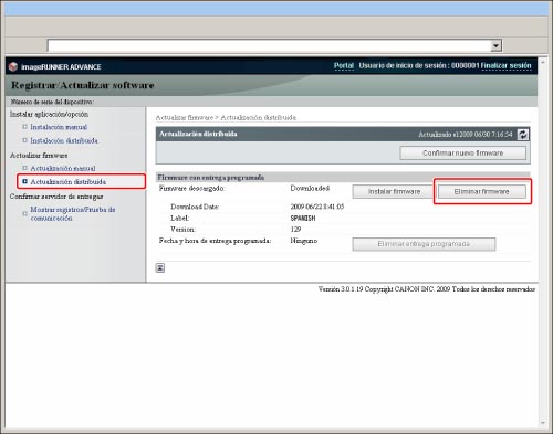 El firmware descargado con actualizaciones programadas también se puede eliminar.