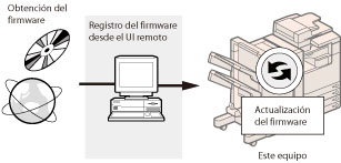Puede actualizar el firmware del equipo a la versión más reciente con la función "Registrar/Actualizar software" de la IU remota.
