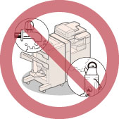 Si pone peso en la parte frontal del equipo, al extraer los casetes, depósitos de papel, o unidades del equipo, es posible que éste se caiga hacia adelante. Para evitar que ocurra esto, asegúrese de que estén puestas las patas de nivelación del equipo.