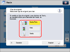 Si el modo Foto de Opciones de funciones (de la pantalla Configuración) está activado, podrá seleccionar [Imagen impresa]. (Consulte "Copiar con el modo Imagen impresa".)