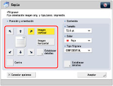Si establece dos de los modos [Numerar páginas], [Numerar juegos cop.] o [Imprimir fecha] para imprimir en la misma posición, aparece un mensaje de confirmación al pulsar