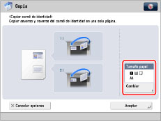 El tamaño de lectura del original está establecido como A5R. Cerciórese de colocar el carné de identidad horizontalmente si la orientación de dicho carné de identidad es horizontal.