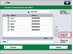 La información que se puede obtener a través del servidor LDAP consiste únicamente en nombres y números de fax.