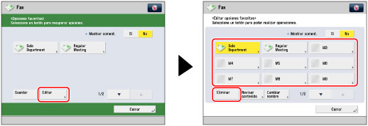 Pulse [Editar] → seleccione el botón que desee eliminar → pulse [Eliminar].