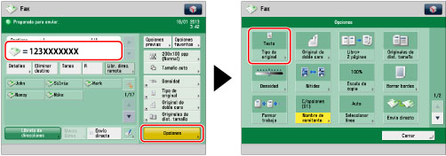 Especifique el destino → pulse [Opciones] → [Tipo de original].