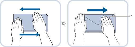 Si los sobres no están correctamente alineados antes de cargarse, puede ocurrir un problema con el suministro del papel o un atasco de papel. Alise bien los sobres antes de cargarlos.
