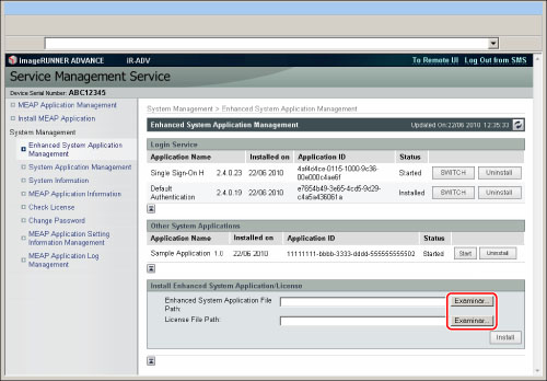 Al instalar una aplicación de sistema, debe especificar tanto el archivo de la aplicación como el archivo de licencia.