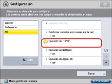 Pulse [Preferencias] → [Red] → [Opciones de TCP/IP].