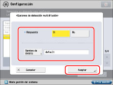 Establezca el nombre de ámbito, si es necesario. Pulse [Nombre de ámbito] → introduzca el nombre de ámbito para usarlo con la detección multidifusión → pulse [Aceptar].