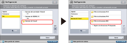 Pulse [Opciones de firewall] para [Red] → [Filtro de direcciones MAC].