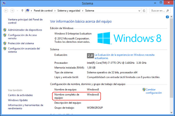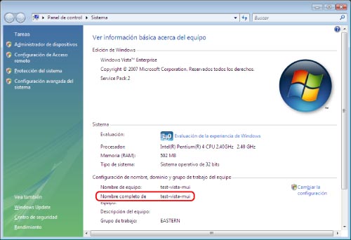 Haga clic en la ficha [Nombre de equipo] → confirme [Nombre completo de equipo] → haga clic en [Cancelar].