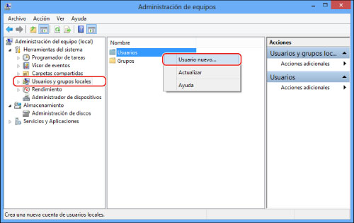 Haga clic con el botón secundario en la carpeta [Usuarios] → haga clic en [Usuario nuevo].