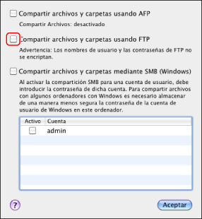 Seleccione [Compartir archivos y carpetas usando FTP].