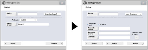 Si el idioma de la pantalla táctil no coincide con el del ordenador utilizado como navegador maestro, puede que las opciones [Nombre de host] y [Ruta de la carpeta] no aparezcan correctamente, o que no pueda explorar los directorios.