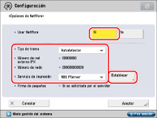 Si [Opciones de NetWare] no aparece, consulte a su distribuidor local Canon autorizado.