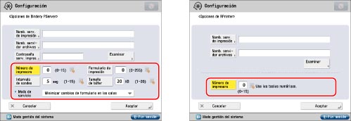 Si al usar Bindery PServer establece una contraseña para el servidor de impresión, pulse [Contraseña serv. impres.] → introduzca la contraseña → pulse [Aceptar].