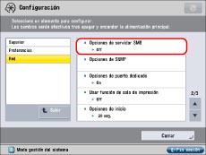 Pulse [Preferencias] → [Red] → [Opciones de servidor SMB].