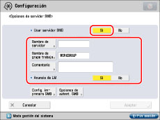 Pulse [Sí] para <Usar servidor SMB> → especifique las siguientes opciones.