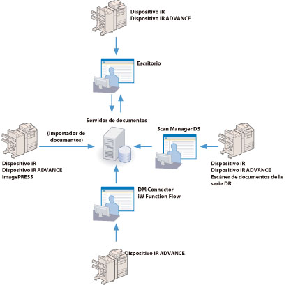 Los documentos importados mediante iW Scan Manager DS podrán transferirse a Document Server, el principal producto de software de la serie iW, utilizado en distintas situaciones empresariales.