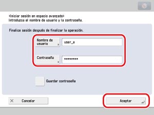 Si aparece la pantalla Iniciar sesión, introduzca el nombre de usuario y la contraseña → pulse [Aceptar].
