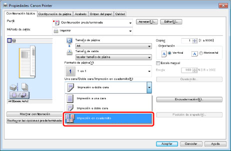 Imprimir un cuadernillo (Windows)
