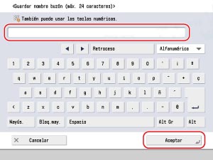 Pulse el número del Buzón fax confidencial para cambiarle el nombre por "Fax no deseado" → pulse [Guardar nombre buzón].