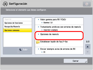 → [Opciones de funciones] → [Recepción/Reenvío] → [Opciones comunes] → [Opciones de reenvío].