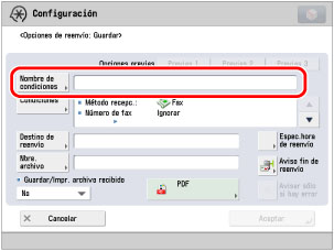 Pulse [Nombre de condiciones] → introduzca un nombre apropiado para la condición → pulse [Aceptar].