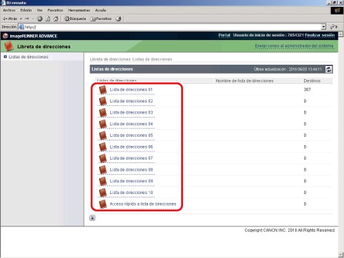 Acceda a la IU remota → haga clic en [Libreta de direcciones], y haga clic en la lista de direcciones que desee guardar destinos.