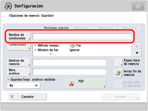 Pulse [Nombre de condiciones] → introduzca el nombre para la condición especificada → pulse [Aceptar].