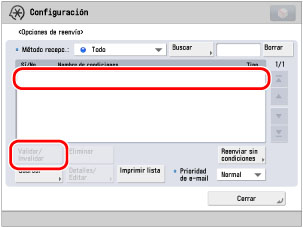 Seleccione la opción de reenvío guardada → pulse [Validar/Invalidar].